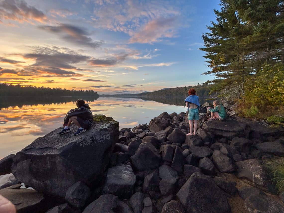 That evening, back in the Hill House dining room, with plates full of pizza and salad, we debriefed the trip as a group. Everyone gave it two thumbs up, with the power of hindsight restoring our rose-colored glasses. “I could do without the impromptu portaging in the rain, though,” one Gapper said. As I think back to watching them work together to carry boats, dry bags, paddles, and group gear, I feel grateful for everything playing out exactly as it did.